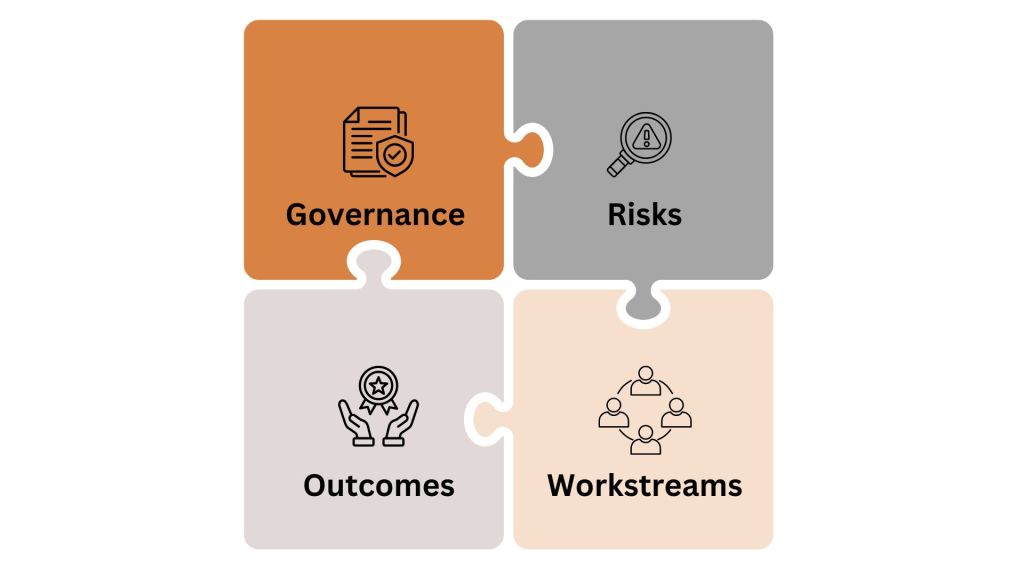 Governance in project management involves nurturing the project and steering it toward success. Just as a gardener prunes plants to promote healthy growth, effective governance involves cutting away the parts of a project that are not working and focusing on those that are. It’s about keeping an eye on the weeds and pests – the risks and issues – that can overtake a project if not managed properly.